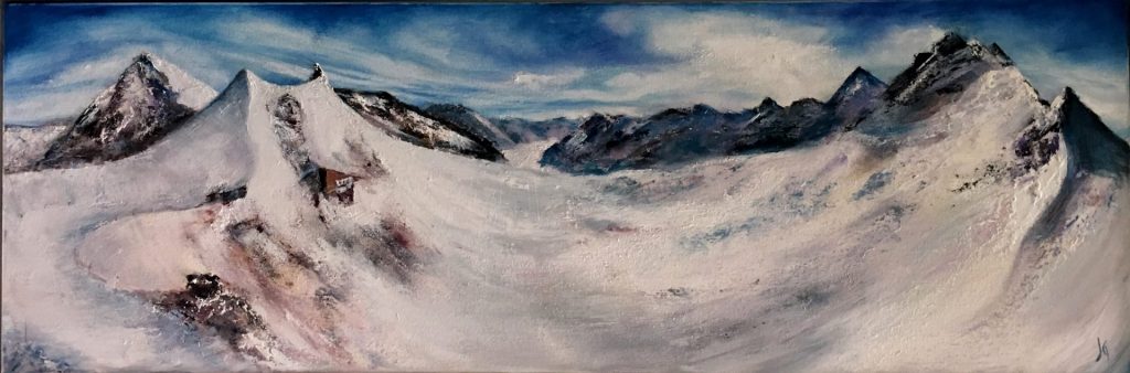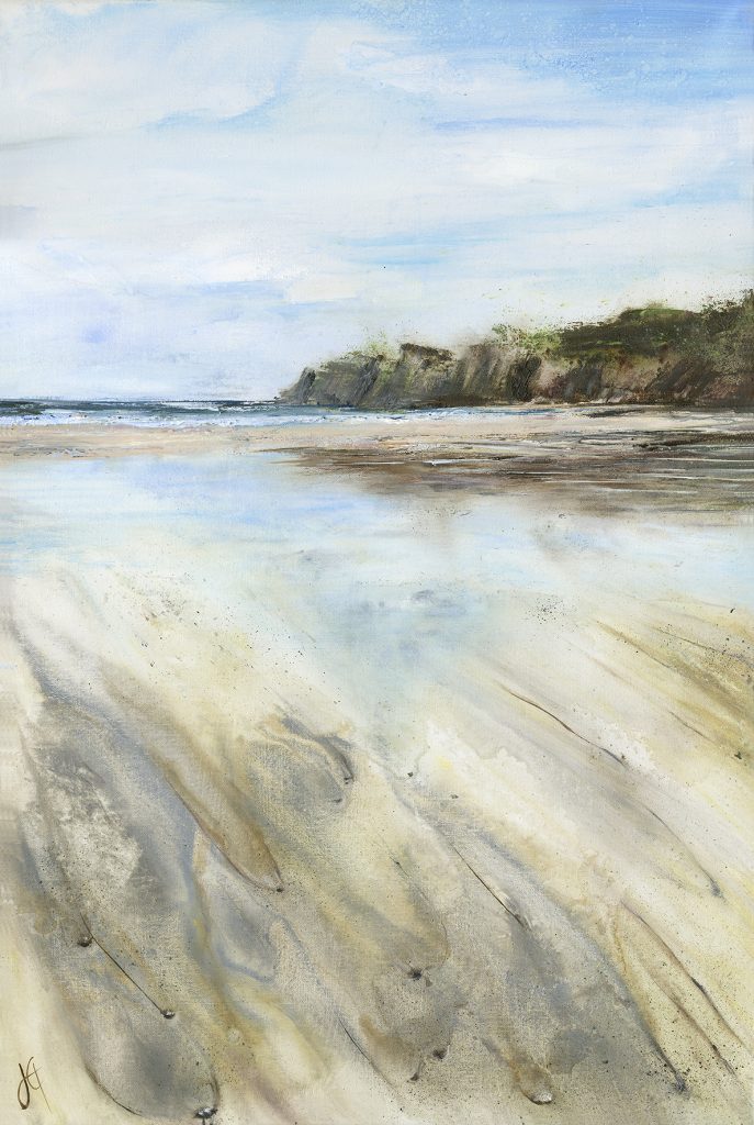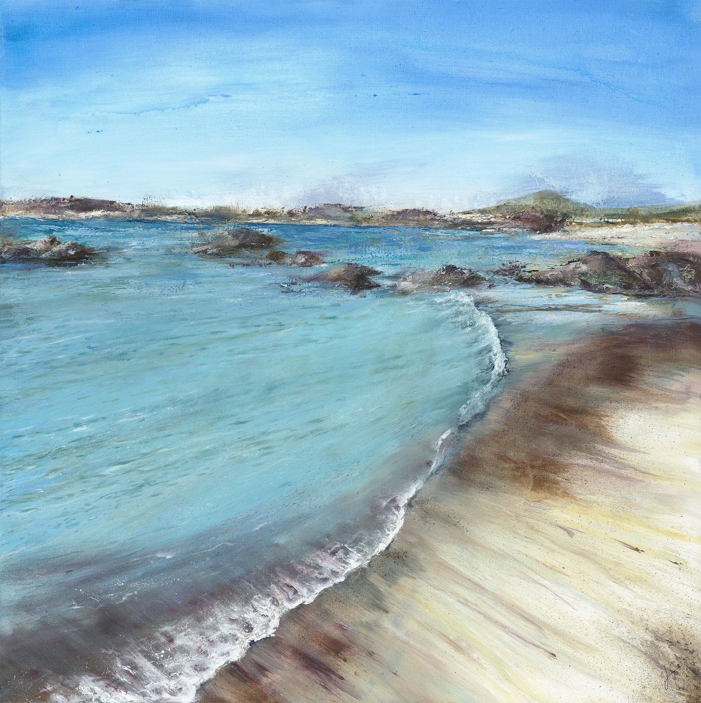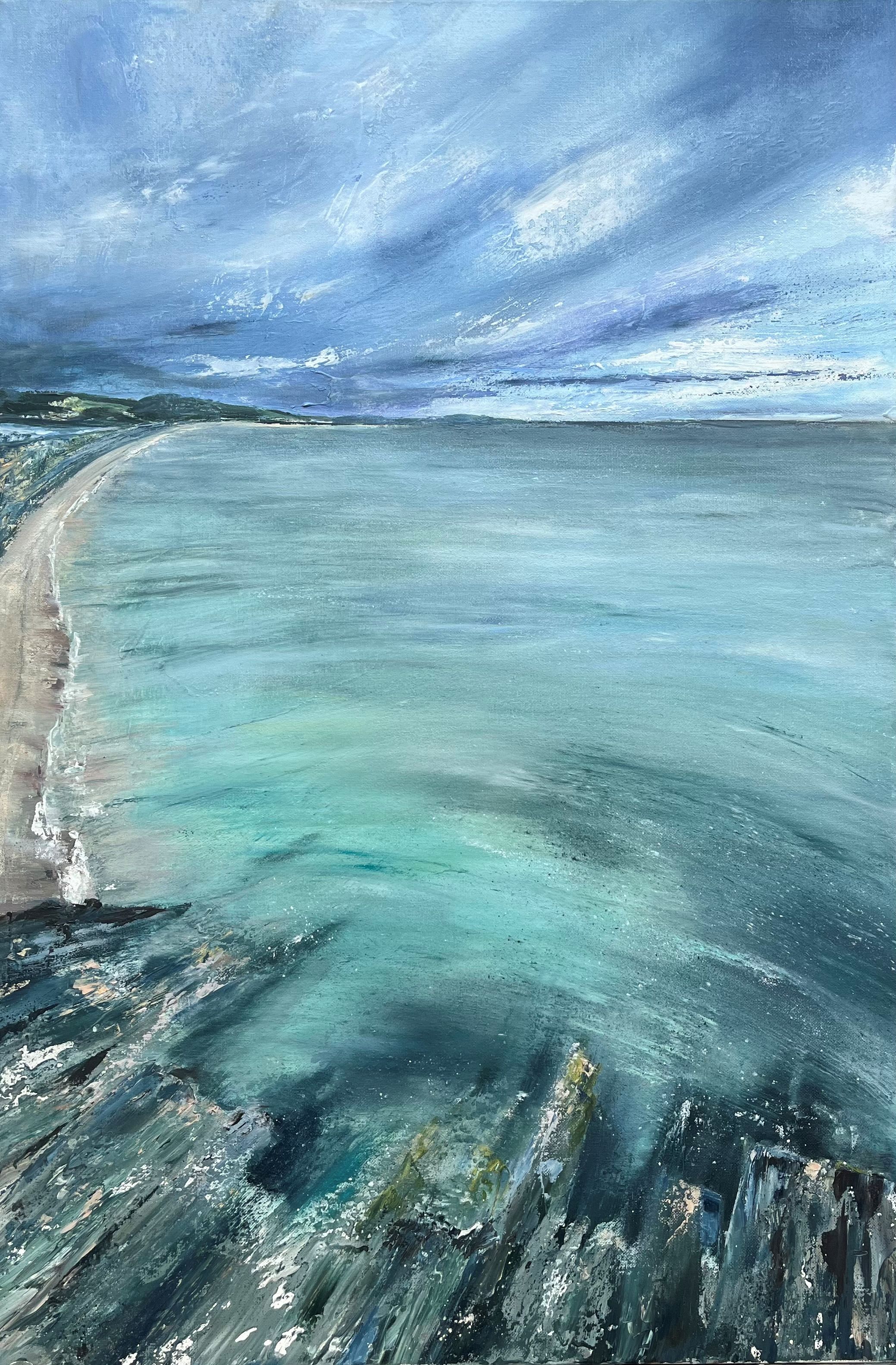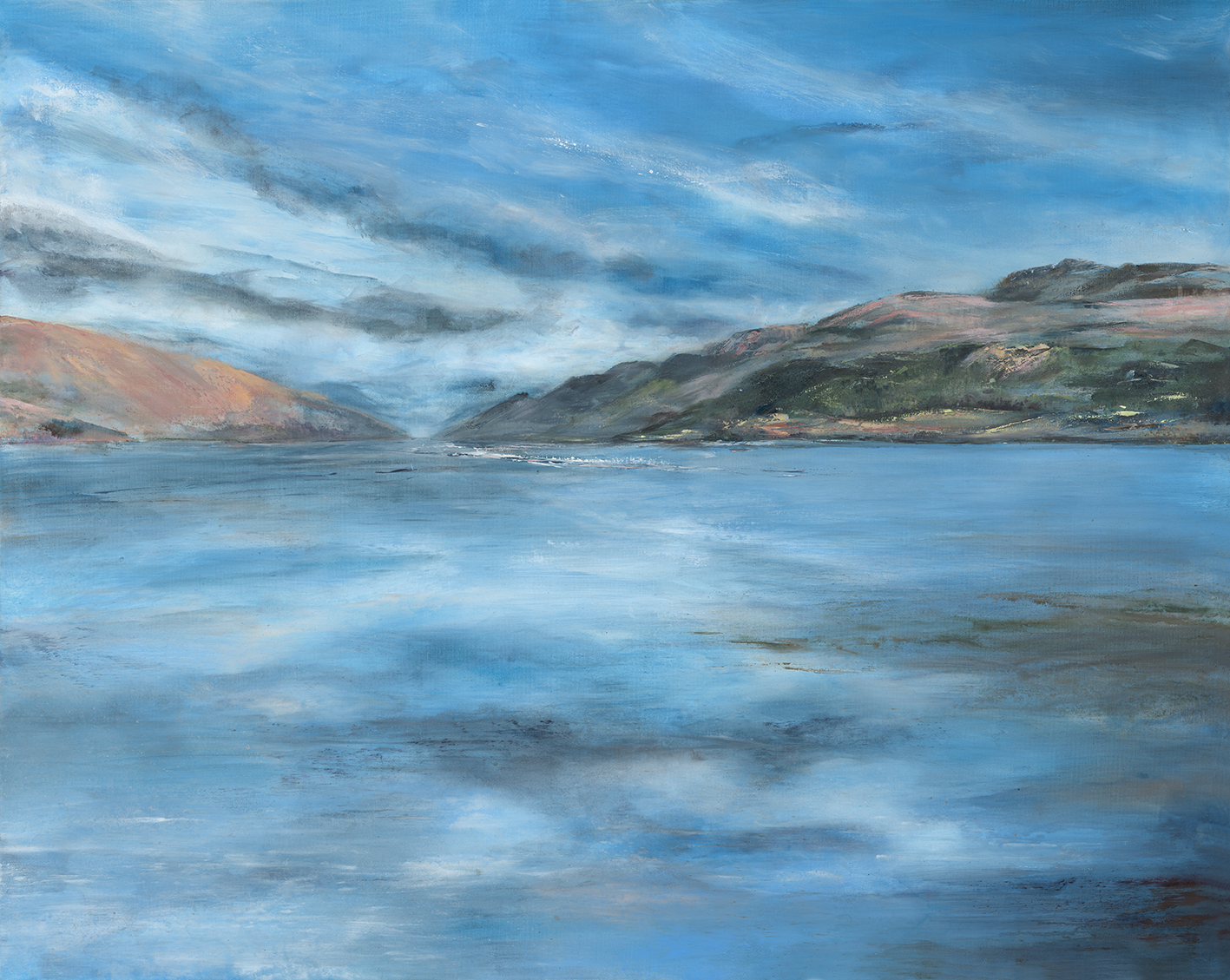 I love how colour can be built up and blended from its constituents using a palette knife and large soft brushes. I often start a piece working in acrylics and a lot of water to give a soft primary layer. I then work over this, mainly with oils, as I find they enable me to create depth and levels of colour, with constant blending and mixing of the paint to produce the hue and texture needed.